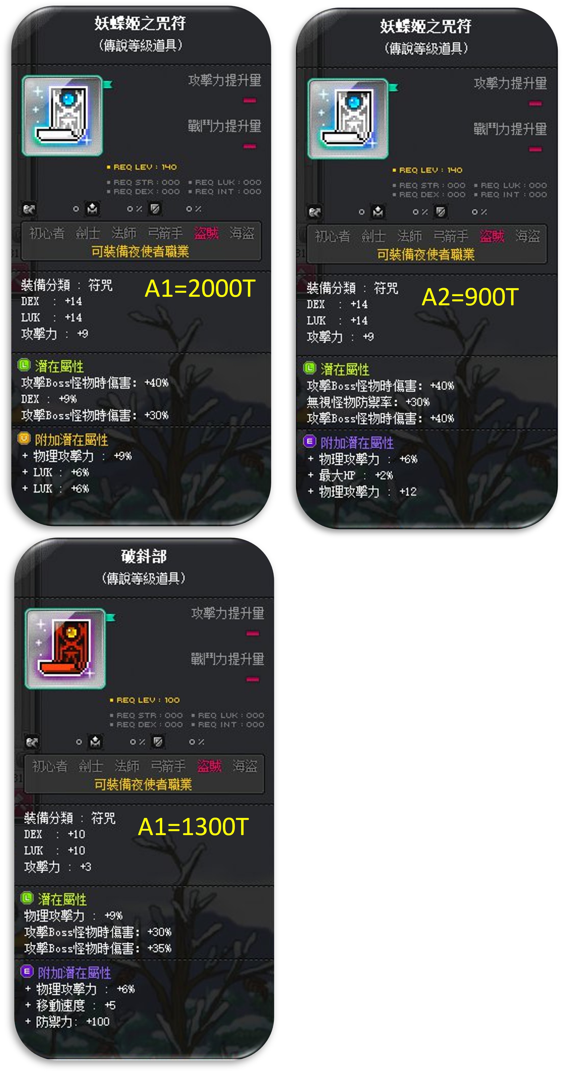 道具 【夜使者 傳罕副武】 妖蝶姬之咒符 破斜部 附加罕見 稀有