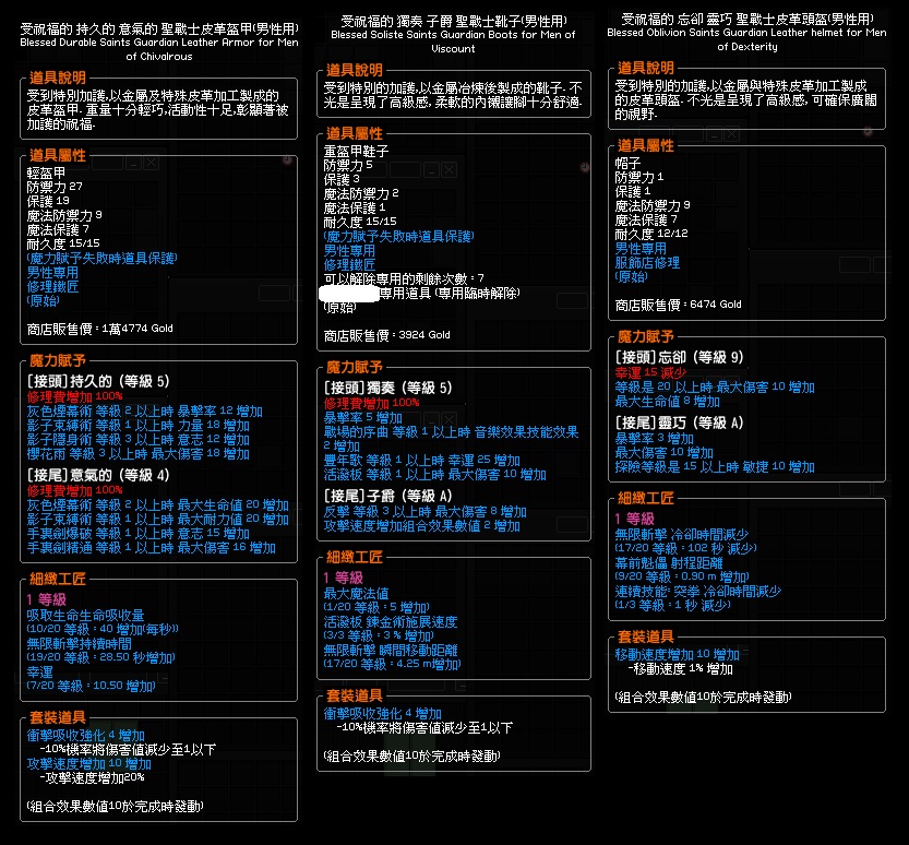 道具 (男)聖戰士無斬裝一套 無斬持續19+無斬距離17+無斬冷卻17
