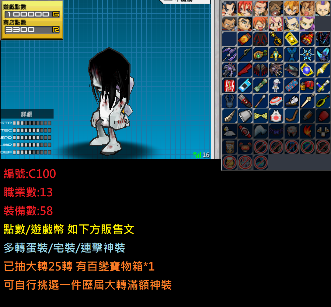 編號:C100(多轉蛋裝/宅裝/連擊裝備)(含神器自選*1+虎年禮包*10)