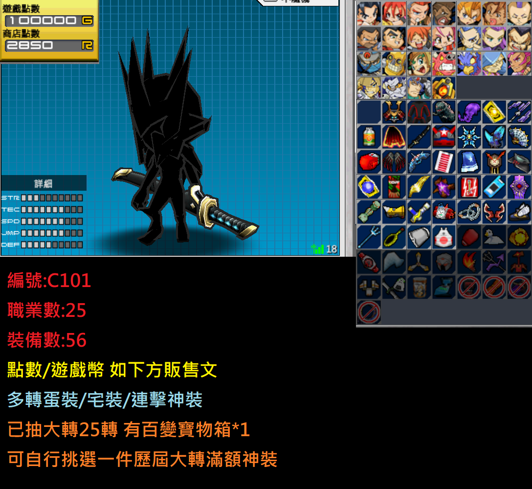 編號:C101(多轉蛋裝/宅裝/連擊裝備)(含神器自選*1+虎年禮包*10)