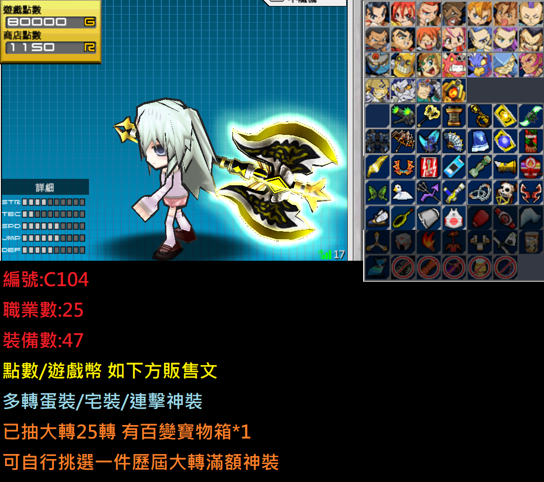 編號:C104(多轉蛋裝/宅裝/連擊裝備)(含神器自選*1+虎年禮包*7)