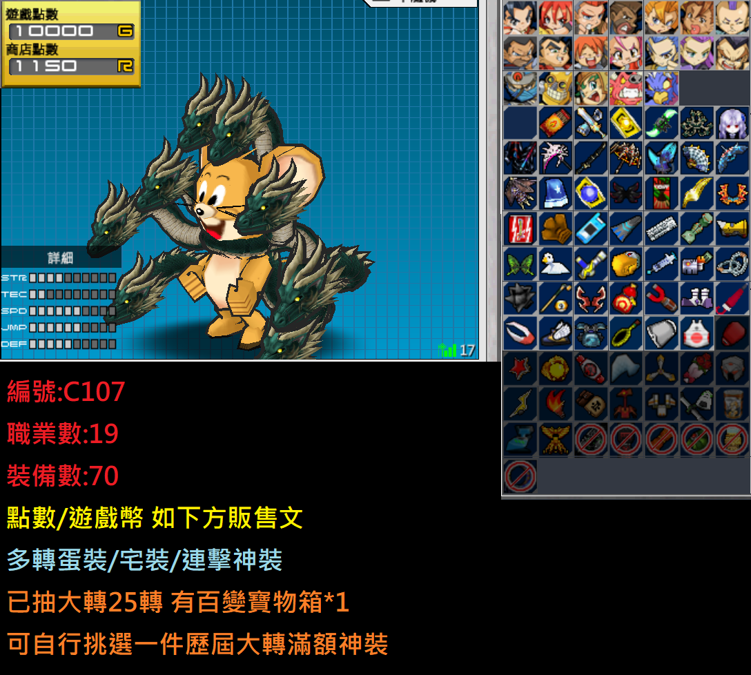 編號:C107(多轉蛋裝/宅裝/連擊裝備)(含神器自選*1+虎年禮包*7)
