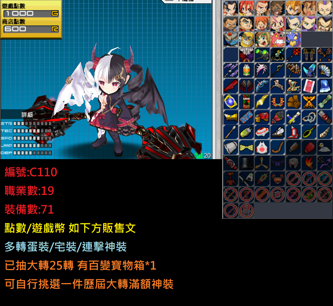編號:C110(多轉蛋裝/宅裝/連擊裝備)(含神器自選*1+虎年禮包*7)