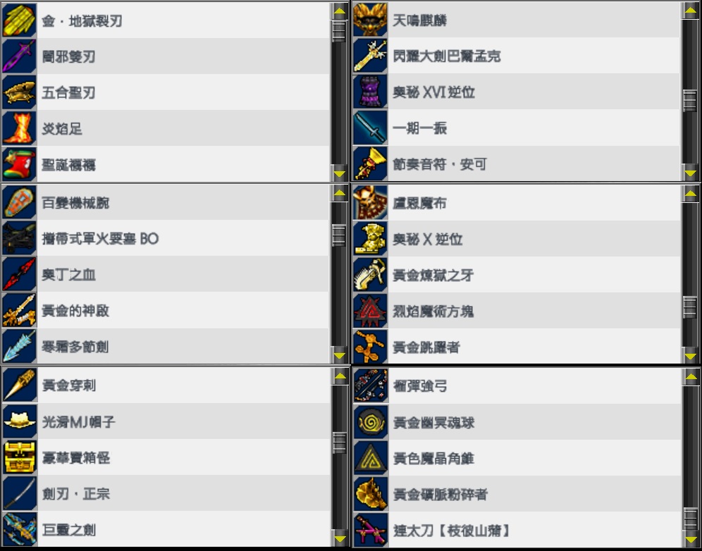 (神器宙斯/金爆破手套/幽浮背包/瑪門/刷迷宮用金無人機)