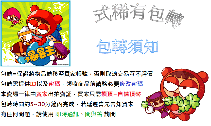 本賣場只交易物品包轉,並無販售任何程式等...