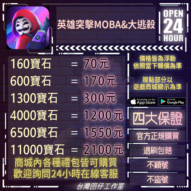 代儲【600寶石=170元】 🏆24H客服🏆英雄突擊-MOBA現貨秒出🔥台灣囝仔🔥退刷包賠🔥