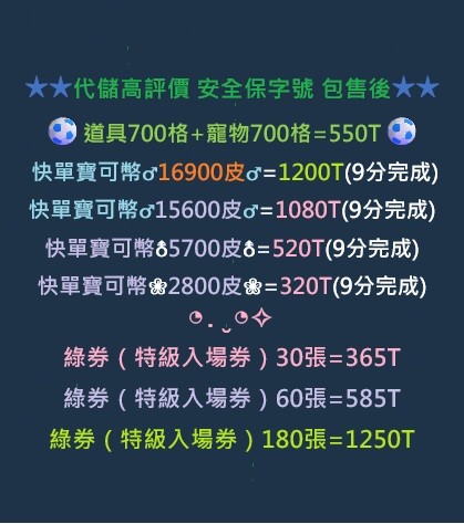 綠券(特級入場券)180張=1250T(需要時間作業)