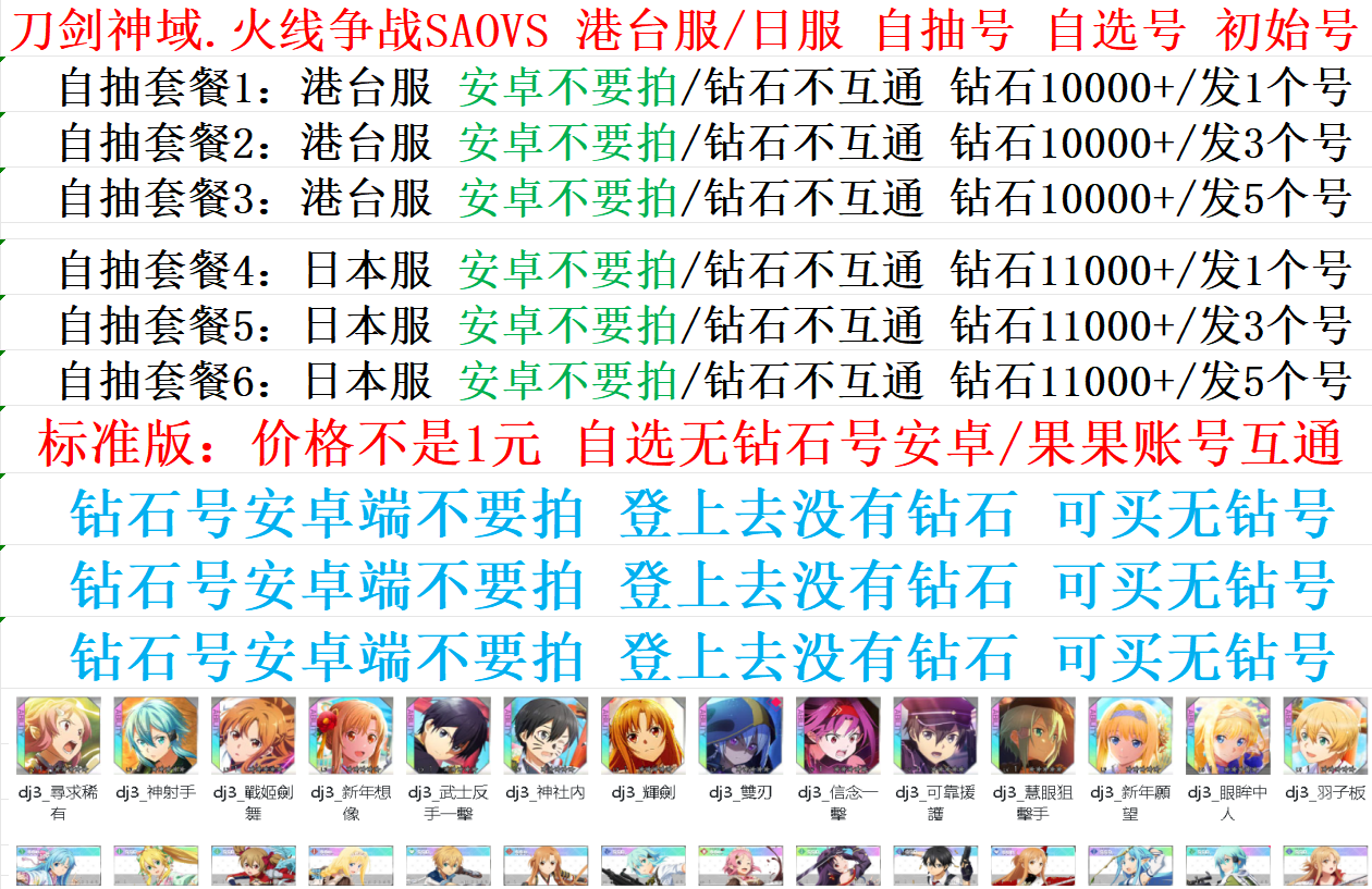 全 8591 首家 SAOVS刀劍神域火線戰爭初始號 日服國際服台繁中版自選自抽石頭號