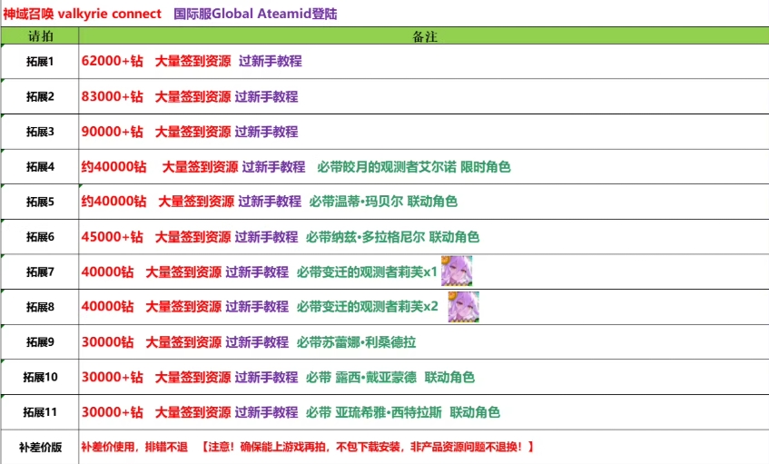 全 8591 首家 神域召喚初始號valkyrie connect國際服自選自抽號開局石頭號連動