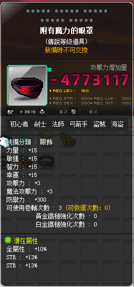 36%力 10%全屬 附有魔力的眼罩