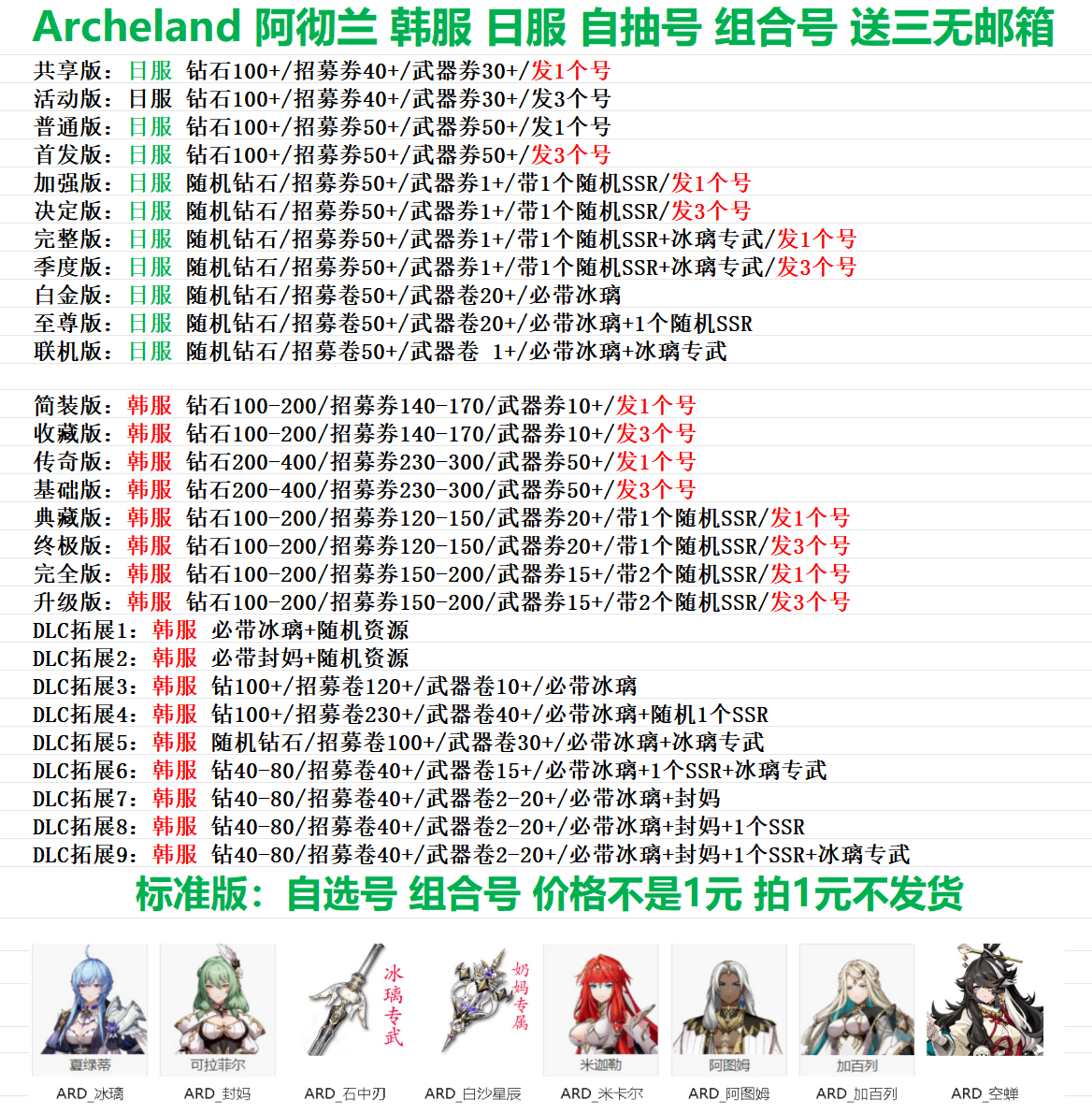 全 8591 archeland阿徹蘭韓服初始多SSR組合開局自選首抽資源初始 Archeland Re:阿契蘭