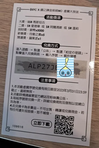 中獎率 100%,每張皆有機會獲得「SSR 馬斯坦古」、「SR 愛德華」、「SR 阿爾馮斯」或「SR 溫莉」等超人氣鋼鍊角色以及更多豐富好禮