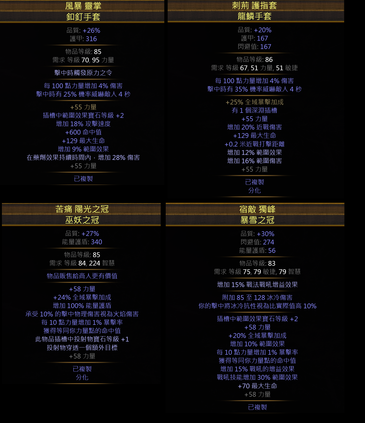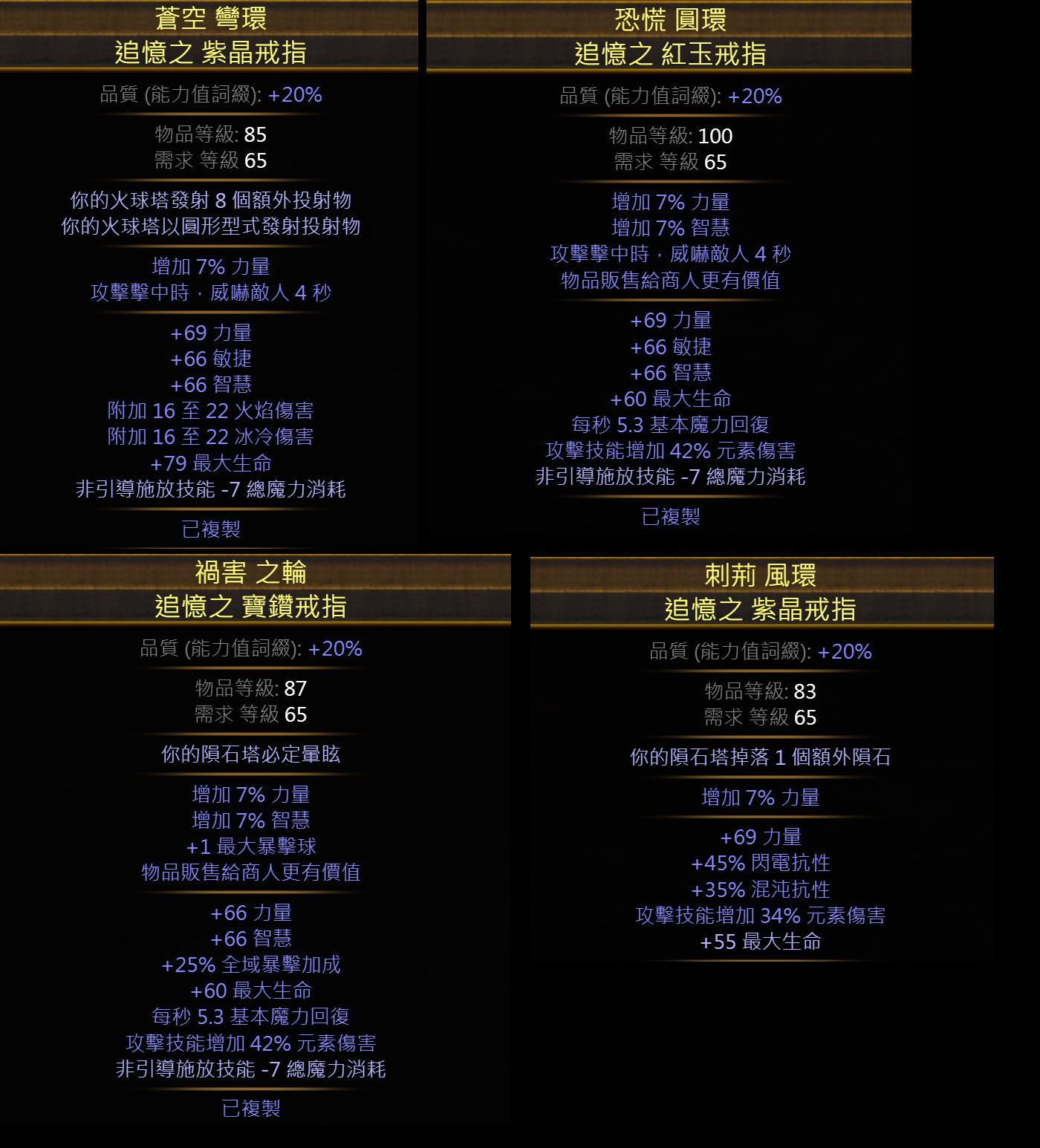 道具 千力複製裝頭盔戒指項鍊武器手套盾牌追憶力量%暴加成暴擊球威嚇原罪流派