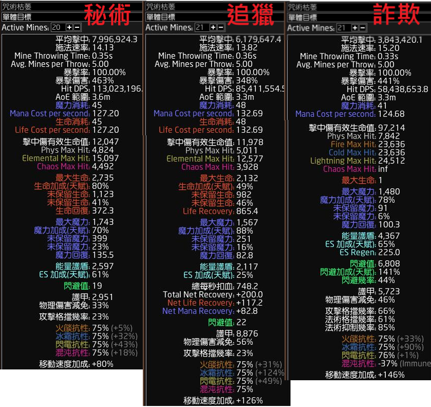咒術枯萎-小資平價版本-2500T-三張POB圖-秘術昇華&追獵昇華&詐欺昇華 看你喜歡那種昇華配置