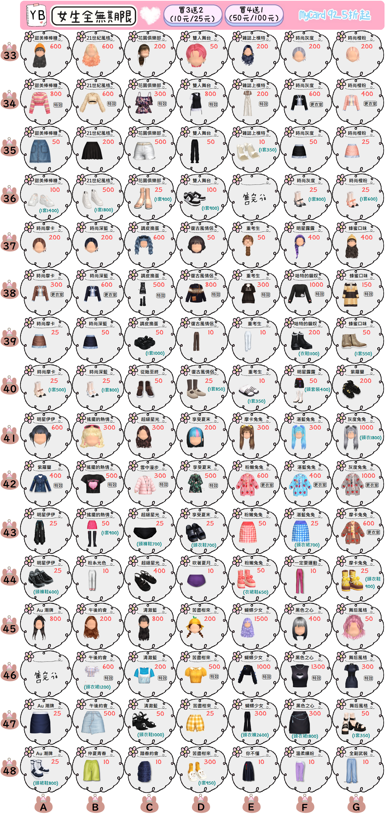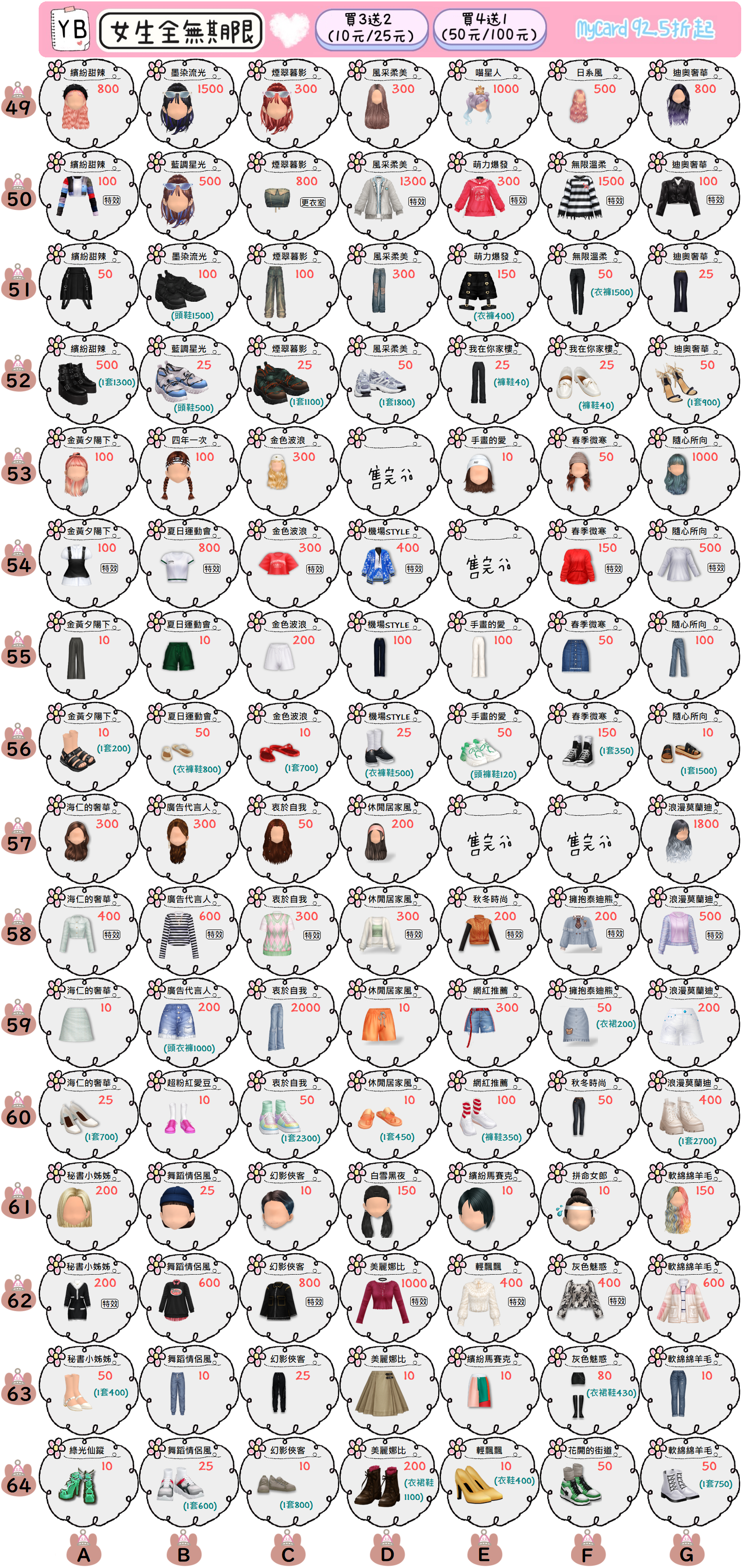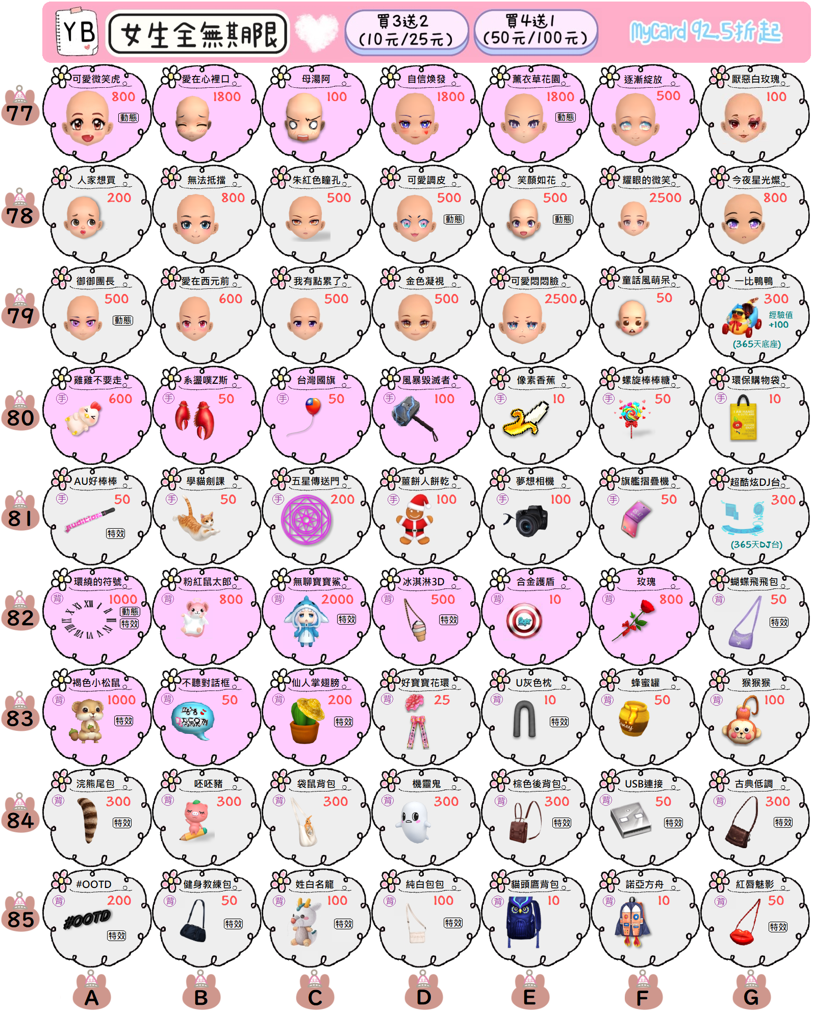 YB的女期限一般扭蛋7天數任選0.5元起~