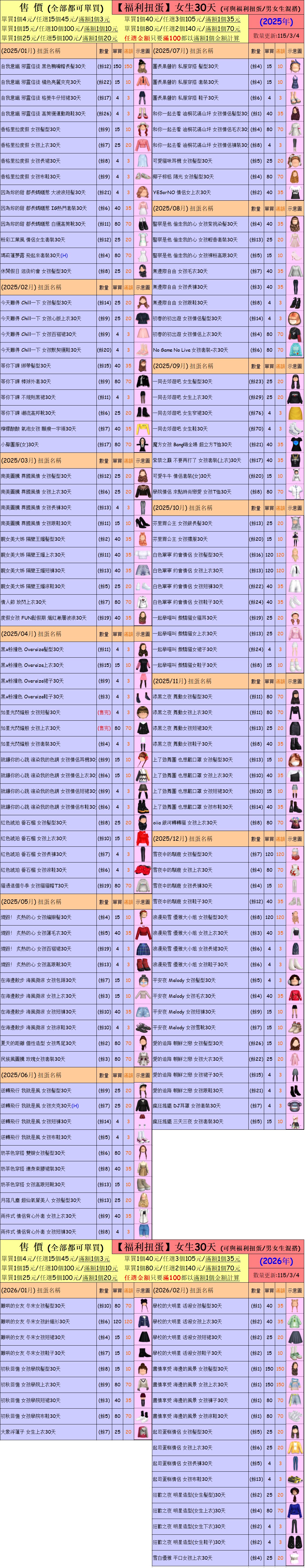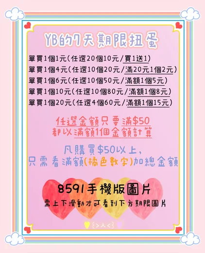 YB的女生一般/福利扭蛋30天數任選3元起~
