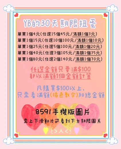 YB的女生一般/福利扭蛋30天數任選3元起~