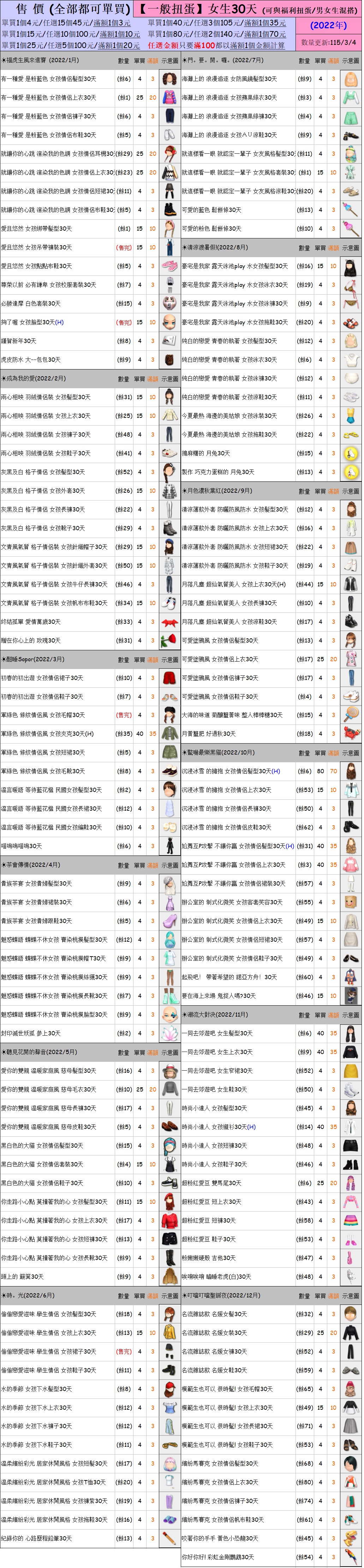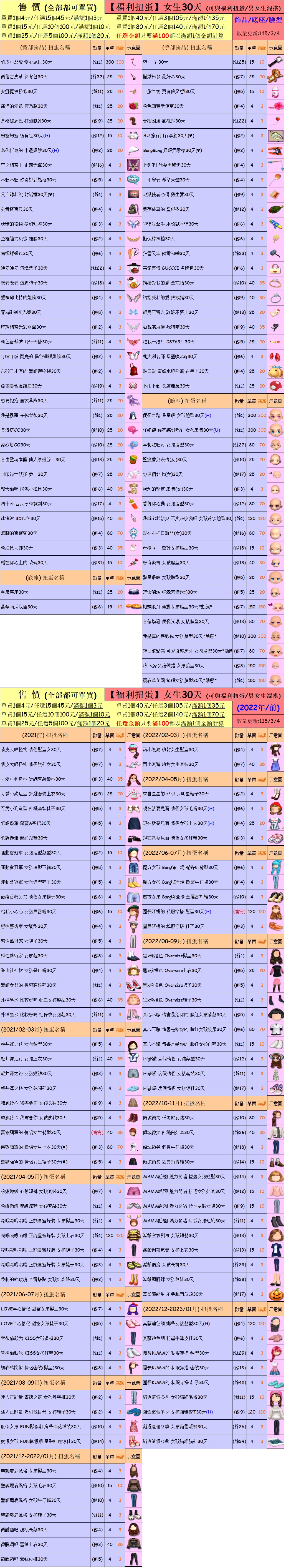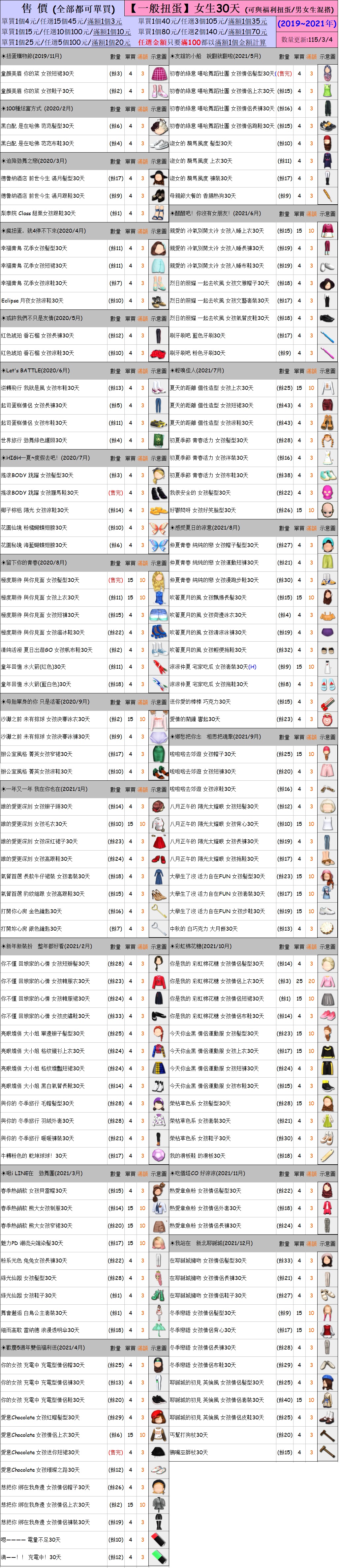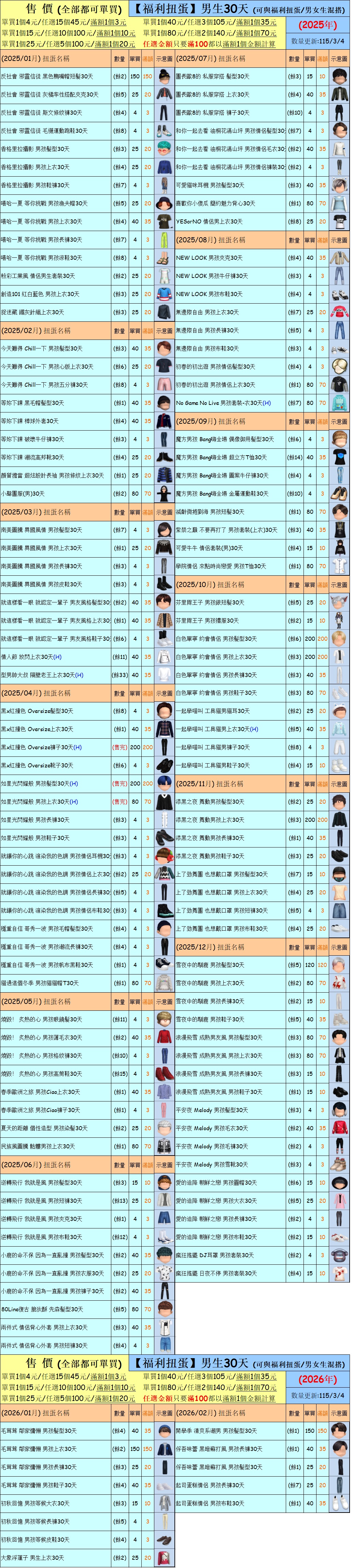 出清 [女生/男生30天一般/福利扭蛋] [115/3/4更新]