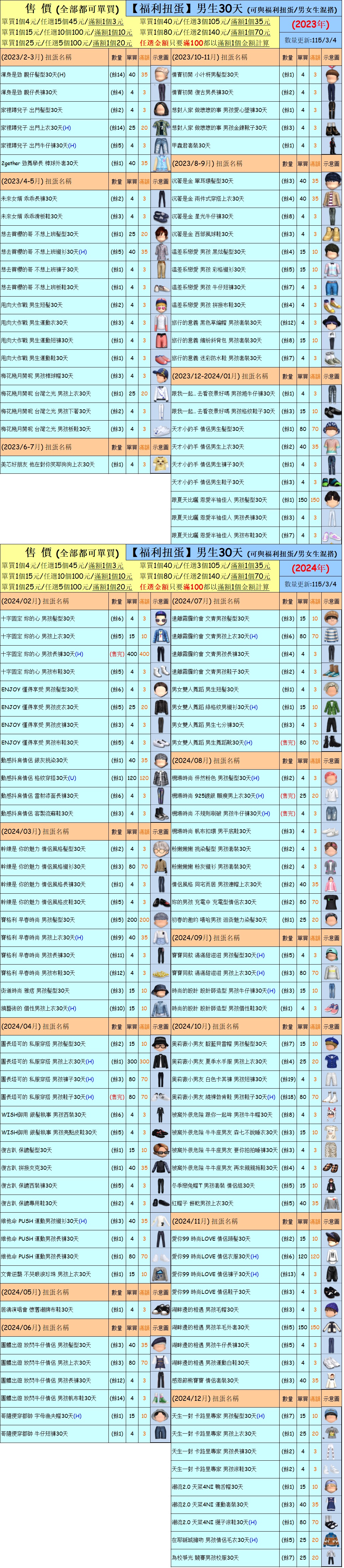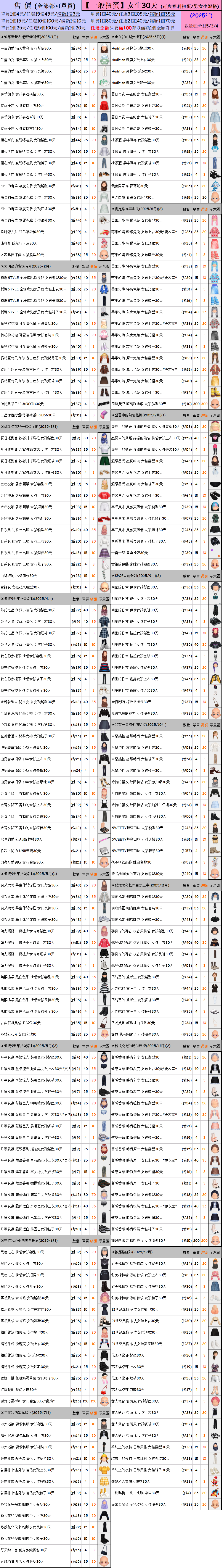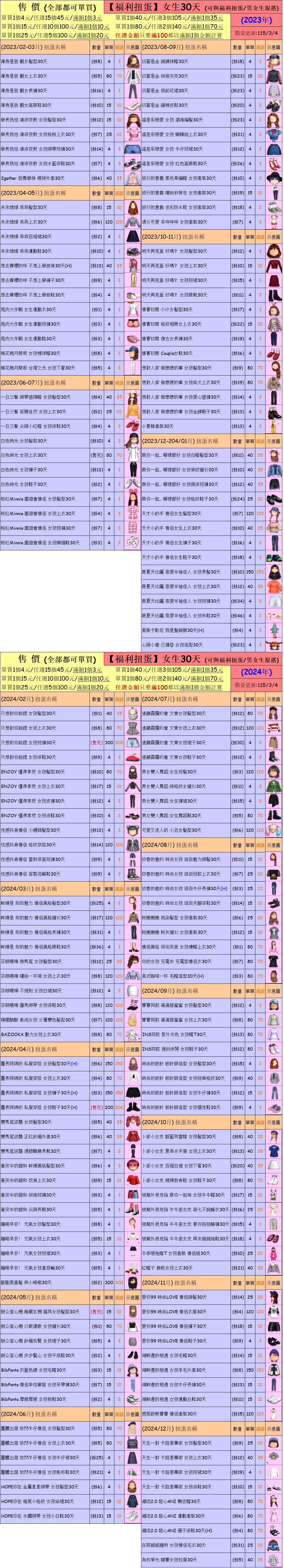 出清 [女生/男生30天一般/福利扭蛋] [115/3/4更新]