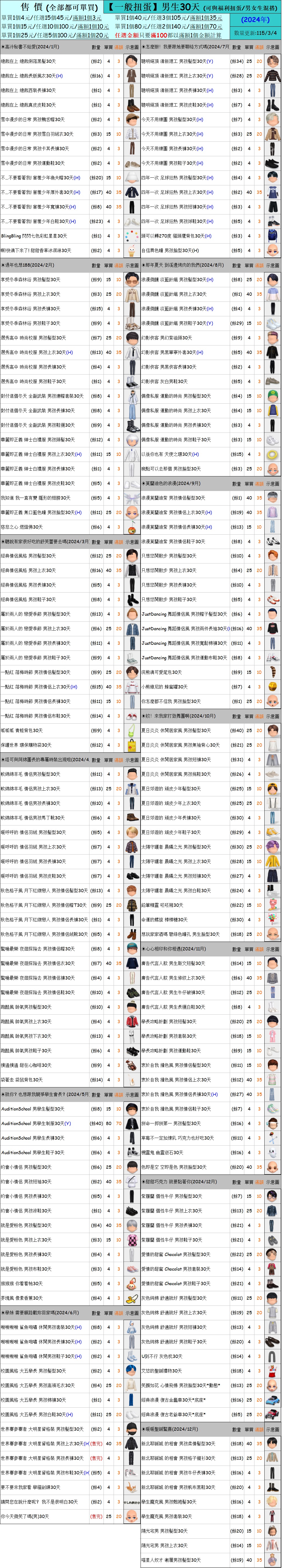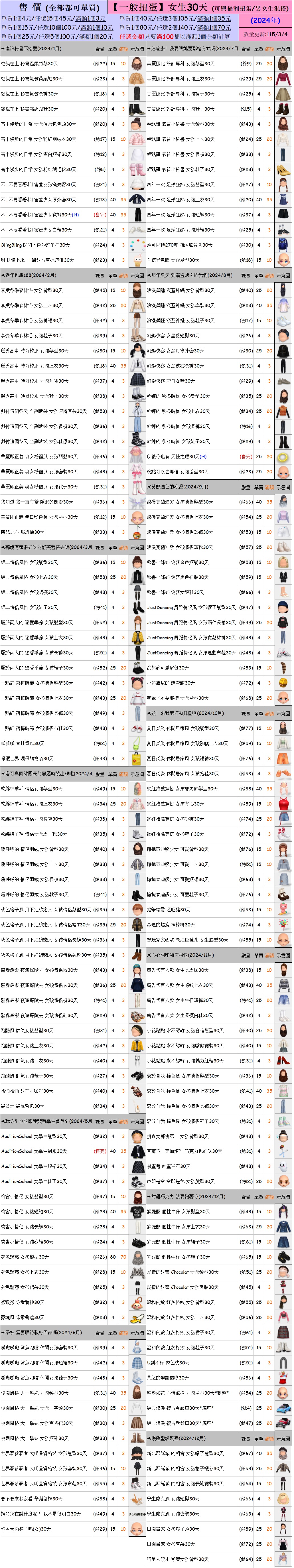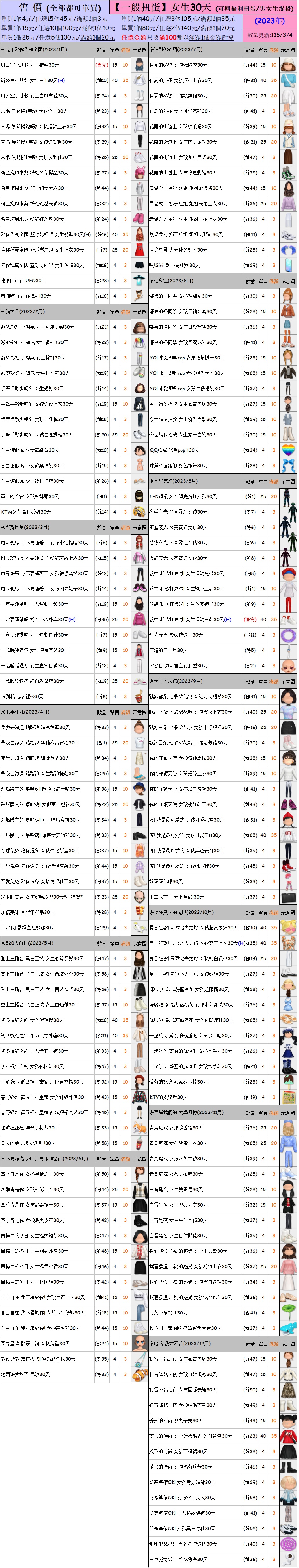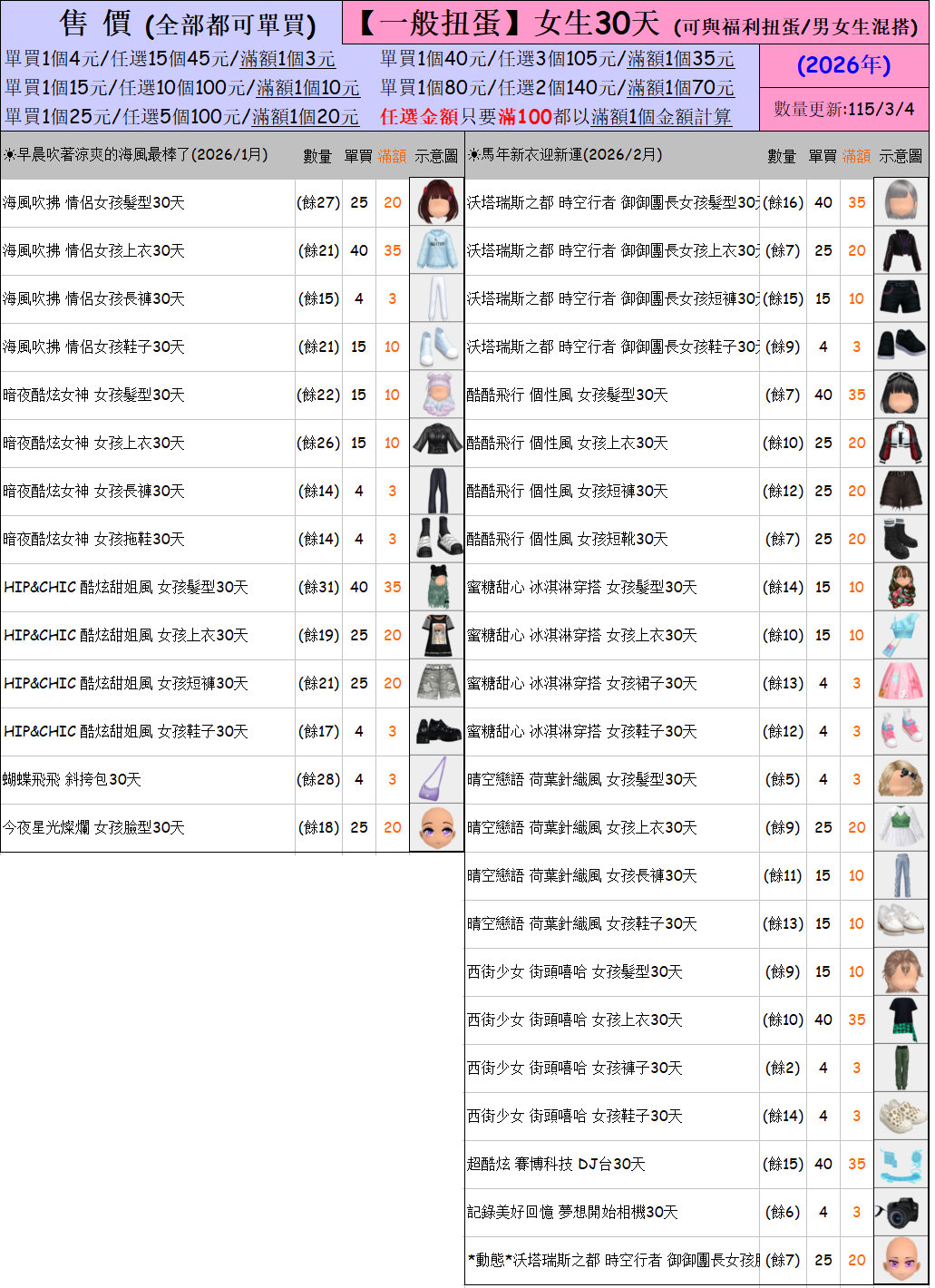 出清 [女生/男生30天一般/福利扭蛋] [115/3/4更新]