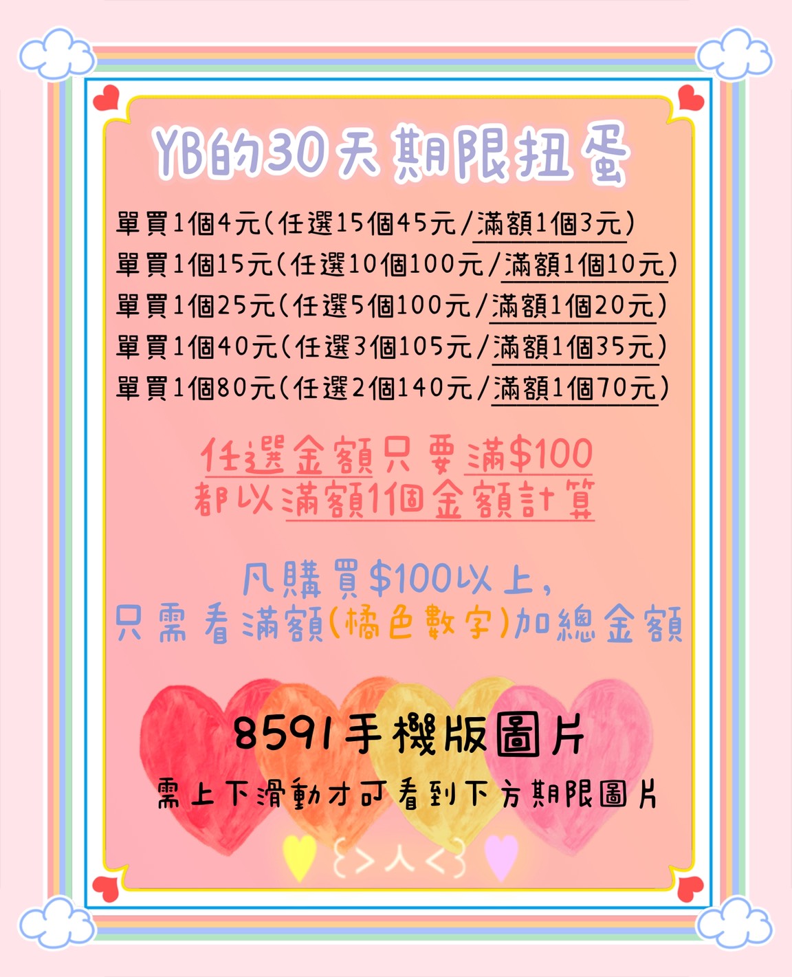 YB的女生一般/福利扭蛋30天數任選3元起~