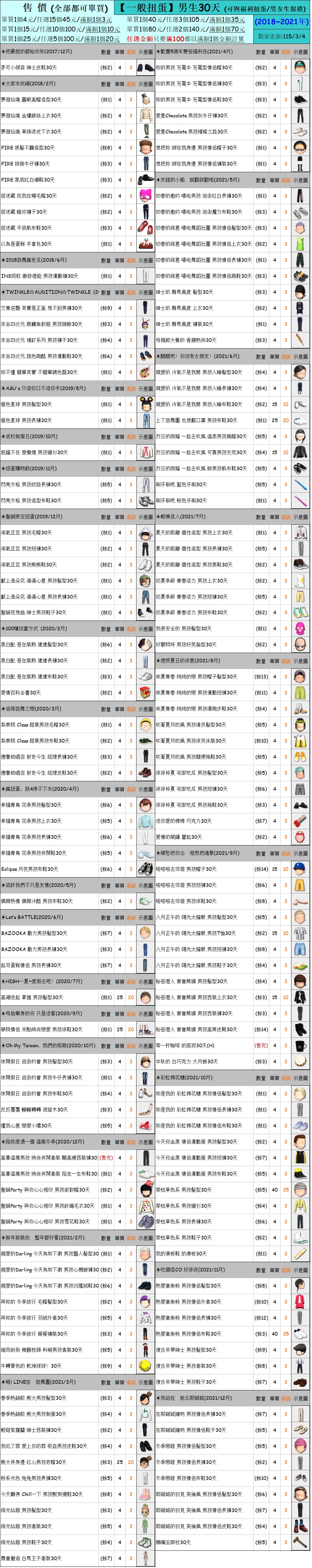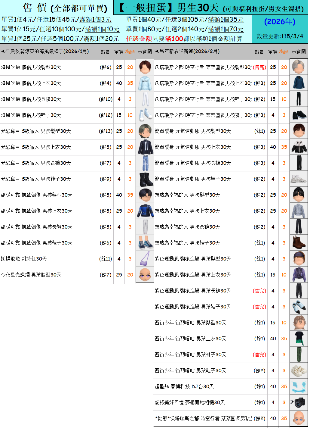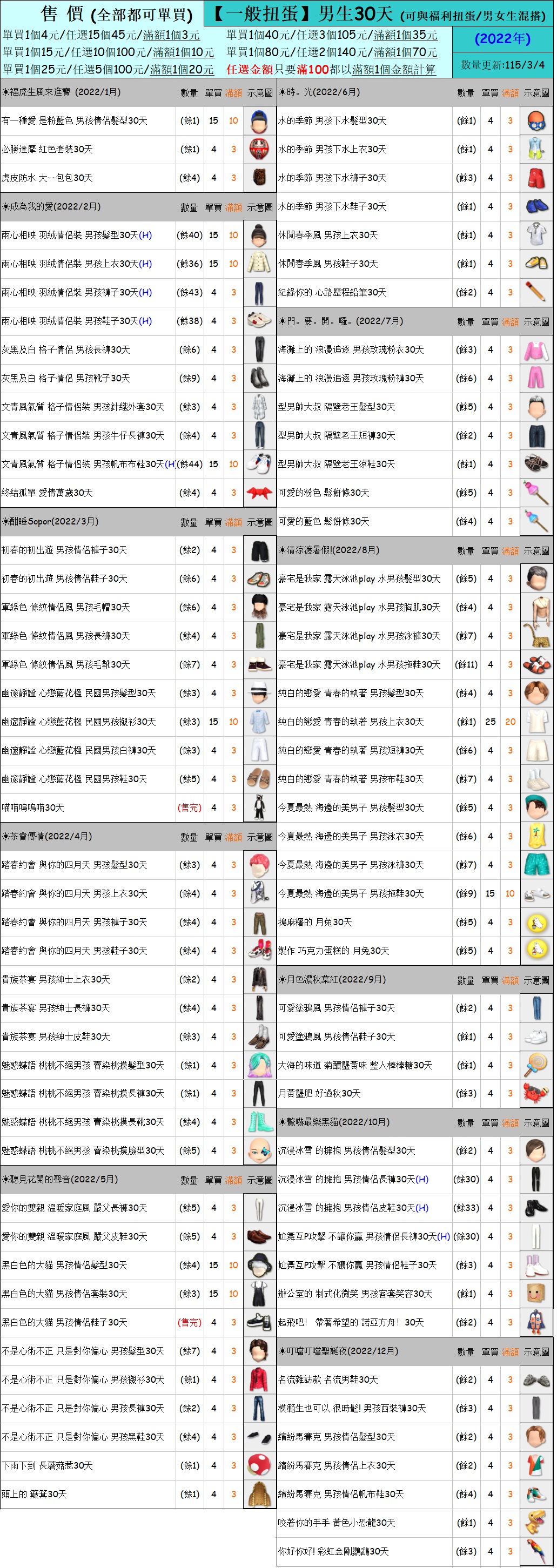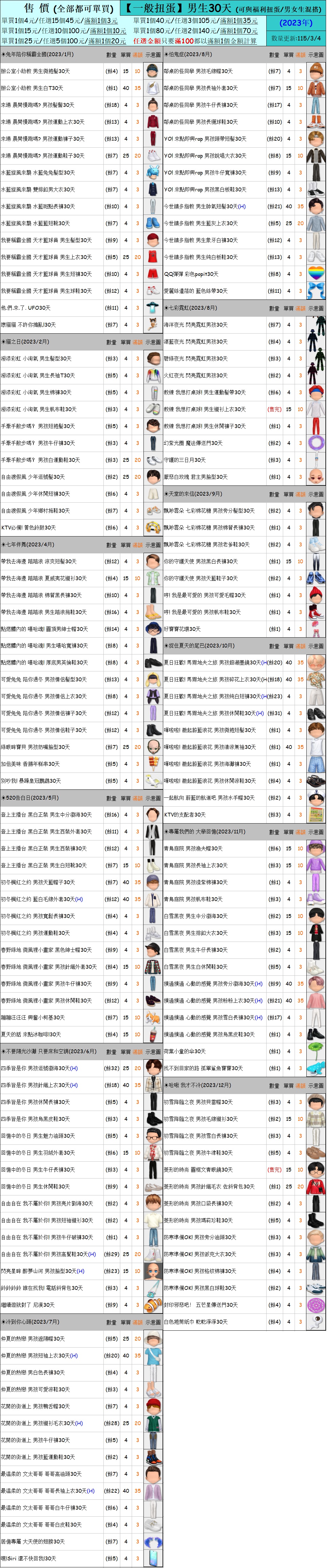 出清 [男生一般扭蛋30天] [115/3/4更新]