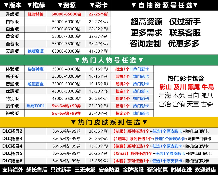 遊戲帳號內容已清楚打出來 沒打出來的皆為隨機附送 不要自己亂加東西 資源 再說帳號上怎沒有 後續出現問題 一律以賣家公布為主 介意勿買
