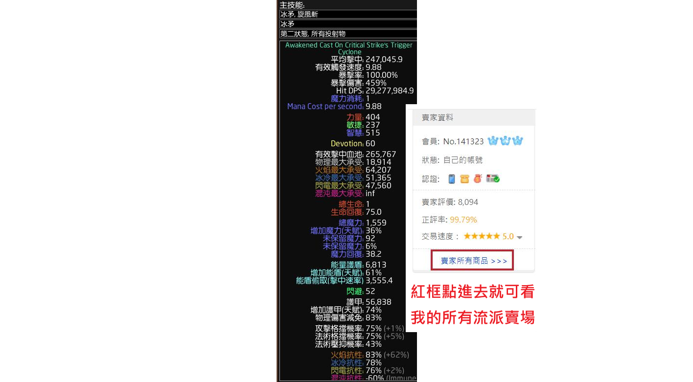 2.我賣的流派(不包含小資)有3大保證 A.滿暴擊滿命中(除了不用暴擊或命中的流派) B.如果有用魔血的話 功能藥劑後綴保證T1詞(暴擊-全抗-攻速施速-閃避護甲-跑速這些等等)+洗好點燃石效果 C.附上POB數據 讓你核對裝備 安心有保障
