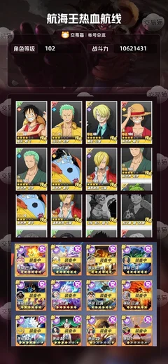 【OBHWHIR168342】|全圖鑑角色有卡普3萬金果130高招,8250萬戰力,全角色只少克比,3萬金果和130高招,高資源號,有神船,單服排名21,多海域人物形象,六星紅髮,六星弗蘭奇,五星和之國羅賓,五星娜美,五星兔子,六星新路,六星戰國,六星青年卡普等等 詳情看圖【朝夕賬號】全圖鑑角色有卡普3萬金果130高招,8250萬戰力,全角色只少克比,3萬金果和130高招,高資源號,有神船,單服排名21,多海域人物形象,六星紅髮,六星弗蘭奇,五星和之國羅賓,五星娜美,五星兔子,六星新路,六星戰國,六星青年卡普等等
