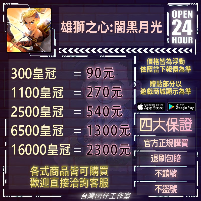 代儲【2500皇冠=540元】 🏆24H客服🏆雄獅之心:闇黑月光代儲🔥現貨秒出🔥台灣囝仔🔥退刷包賠🔥