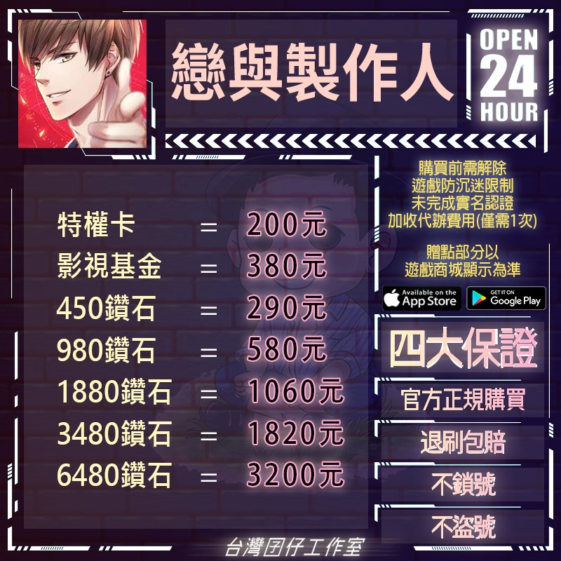 代儲【68影視基金=380元】 台灣囝仔24H服務中🏆遊戲官方認證🏆戀與製作人陸服代儲🏆實名認證人臉辨識