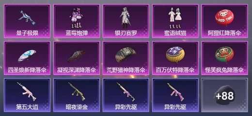 稀有槍械: DP-28-槍炮玫瑰 M762-甜蜜誓約 Kar98K-綠意幻情 UZI-綺夢青鸞 MG3-炙焰牛王 SCAR-L-甜夢小狐 AWM-焰龍焚天 UMP45-恐龍拽拽 Mini14-絢金瑰夢 M416-心之戀語 Mini14-熒光蟲舞 AUG-星之彼岸 Kar98K-伏魔團 AKM-甜心寶貝 SCAR-L-夢幻火箭 VSS-烈焰拳霸 S12K-海淵國主 M24-暗星紫秘 SKS-詭面斬 AKM-炫紫旋律 AKM-夢之光華 DP-28-扶搖飛仙 AWM-花間之火 UMP45-相思殘雪 湯姆遜-怪笑瘋兔 M249-藍莓炮彈 SKS-碧影閃光 SLR-暗夜玫瑰 M16A4-葫蘆兄弟 M762-冷魅冰騎 M416-五爪金龍 AUG-妙趣可麗 SCAR-L-童趣迷兔 AWM-橘柚傾心 DP-28-幻夢音符 SCAR-L-機甲封神 Mini14-龍蝦霸霸 GROZA-焦糖拿鐵 M249-古戰神甲 M762-激戰未來 Vector-紅傘翩翩 MG3-洛神天依 UMP45-雪國精靈 AKM-百合蜜語 M762-甜心娃娃 UZI-筑夢精靈 M416-風花雪月 Kar98K-暗翼戰神 GROZA-香水檸檬 SCAR-L-青春物語 M24-星之信仰 野牛-流星咚咚