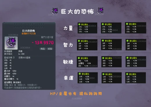 潛能可選: ➤ 力量/敏捷/智力/幸運/HP