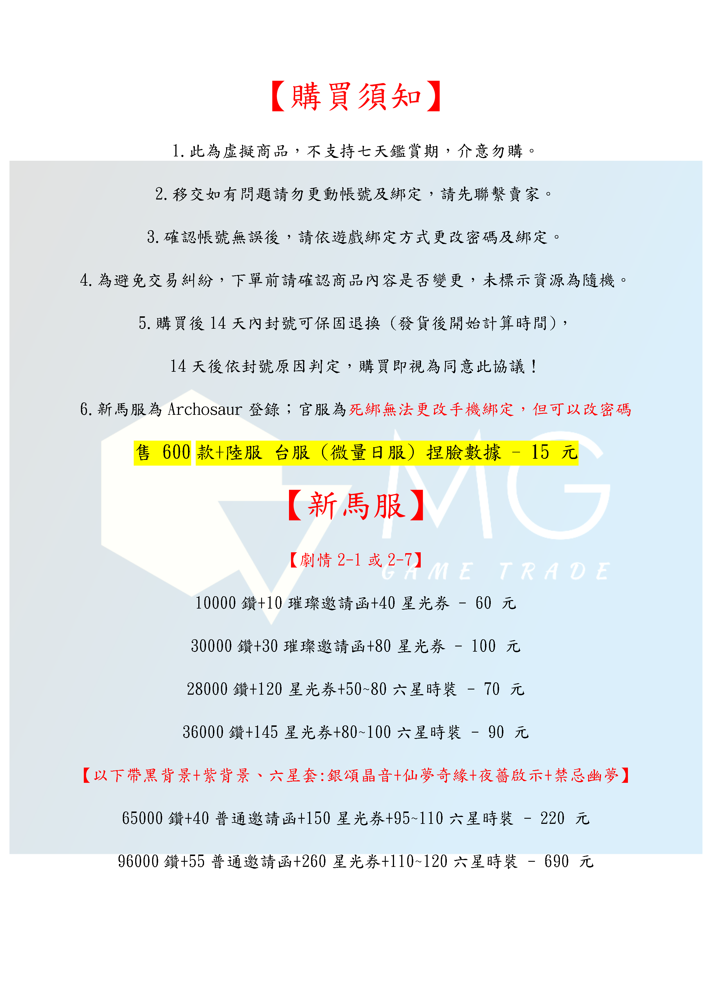 帳號 【初始號】 【MG數碼】 新馬服 陸服 多石號 多鑽石號 初始號 自抽號 自選號 自選組合