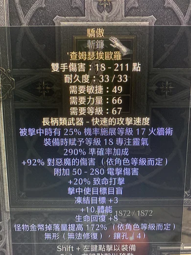 非天梯 驕傲 18靈氣 290準確加成 無形斬鐮