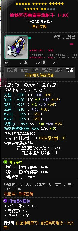 道具 【神秘冥界幽靈靈魂射手】 22星 雙B物 V卷軸 附加雙排 22C 天破主武器 偶像降世 完美落幕