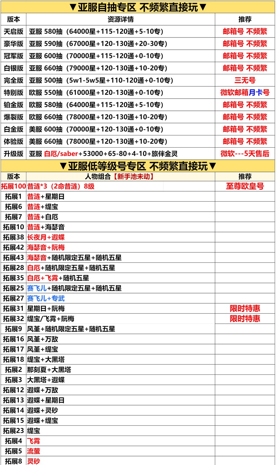 遊戲帳號內容已清楚打出來 沒打出來的皆為隨機附送 不要自己亂加東西 資源 再說帳號上怎沒有 後續出現問題 一律以賣家公布為主 介意勿買
