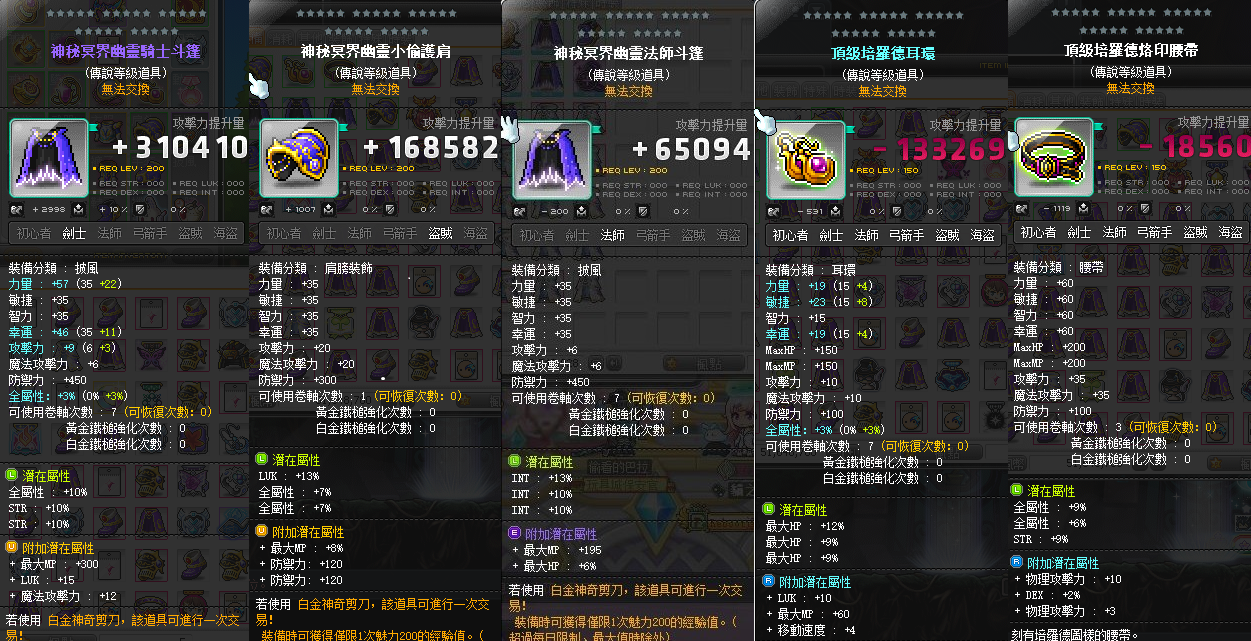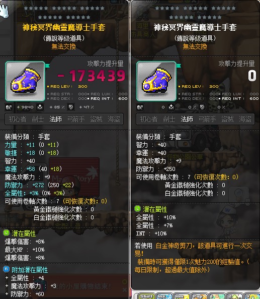 【雙暴爛法師手套】 27%智法師手套/27%幸小偷肩/33%幸小偷鞋/30%幸小偷裝/30%力劍士披