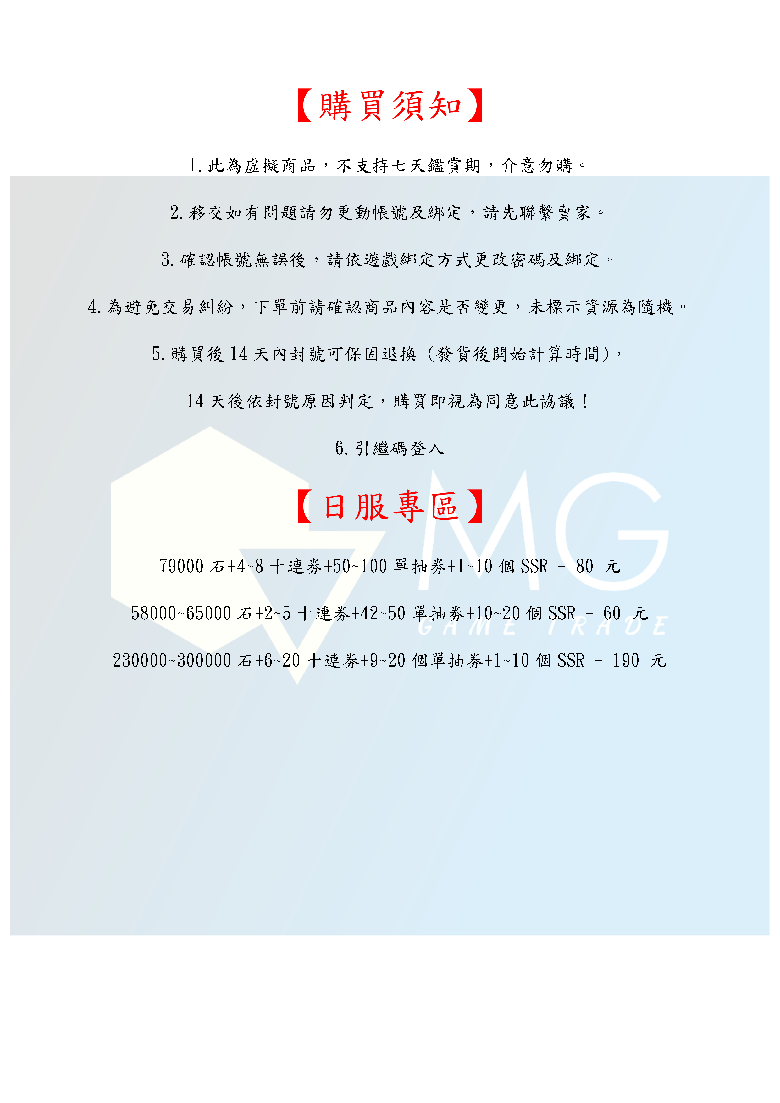 5.購買後14天內封號可保固退換 (發貨後開始計算時間),