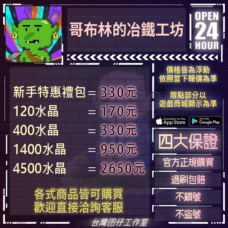 代儲【4500水晶=2650元】 🏆24H客服🏆哥布林的冶鐵工坊代儲🔥現貨秒出🔥台灣囝仔🔥退刷包賠🔥