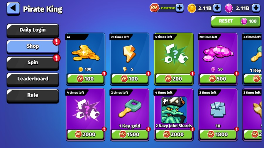 21億鑽石 + 21億金幣 + 21億能量 + 21億活動幣 + 2個人物 4套裝備滿星滿級 = 1000元