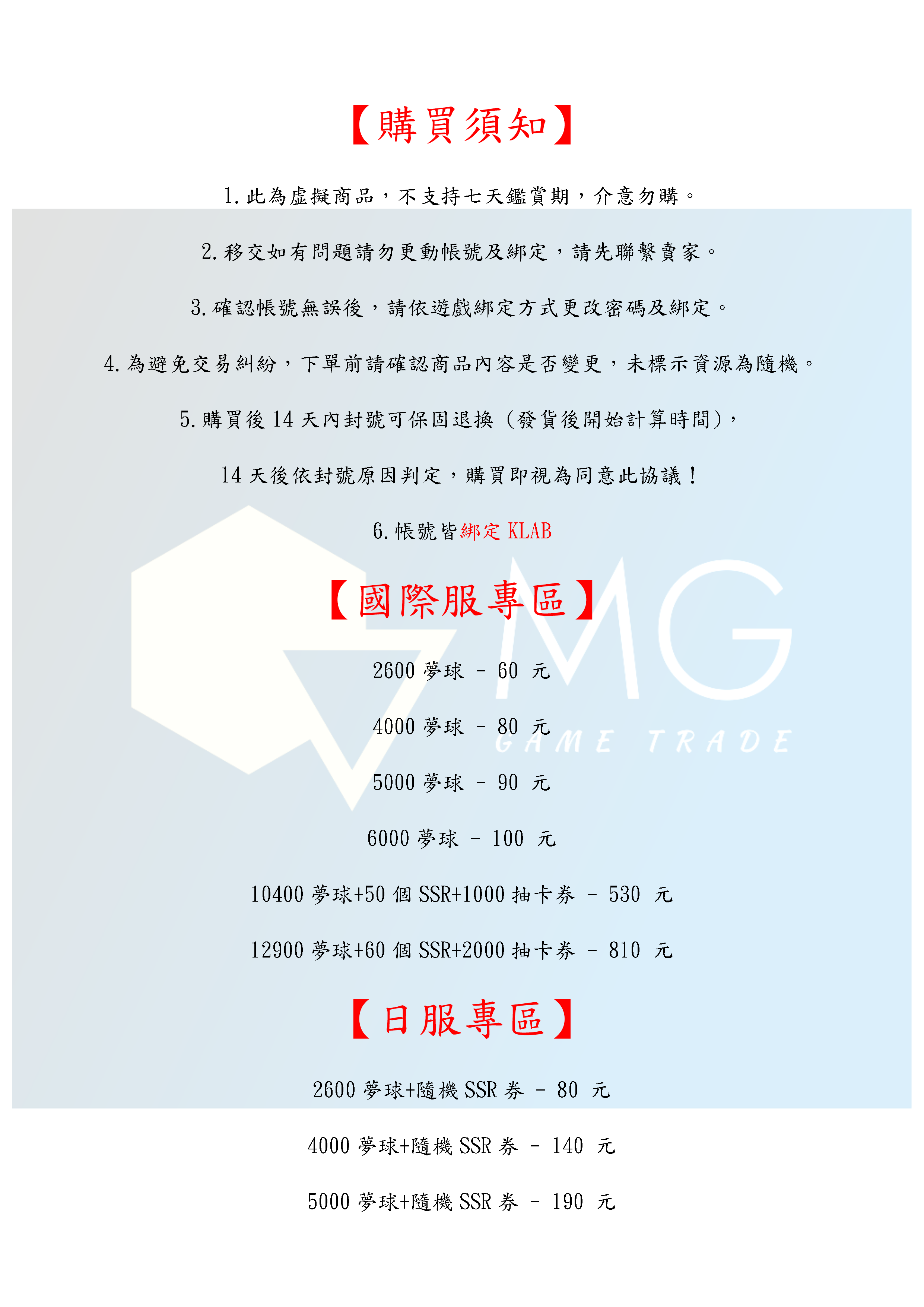帳號 【初始號】 【MG數碼】 日服 國際服 多夢球號 多石號 自抽號 初始號 自選號 自選組合