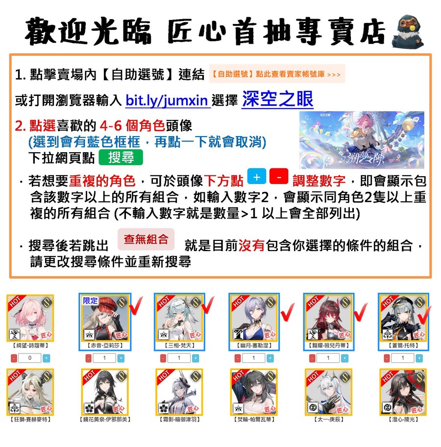 1. 進入網址 【 bit.ly/jumxin 】 查詢組合