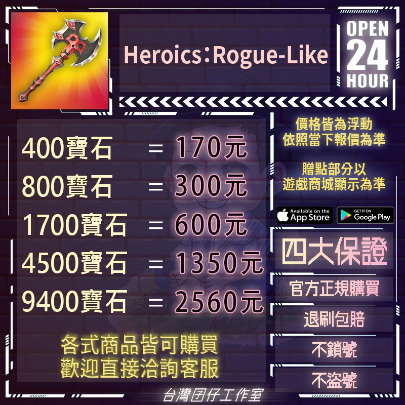代儲【400寶石=170元】 🏆24H客服🏆Heroics:Rogue-Like代儲🔥退刷包賠🔥