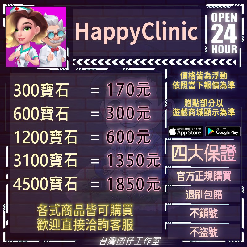 代儲【300寶石】 🏆24H客服🏆快樂診所代儲🔥現貨秒出🔥台灣囝仔🔥退刷包賠🔥