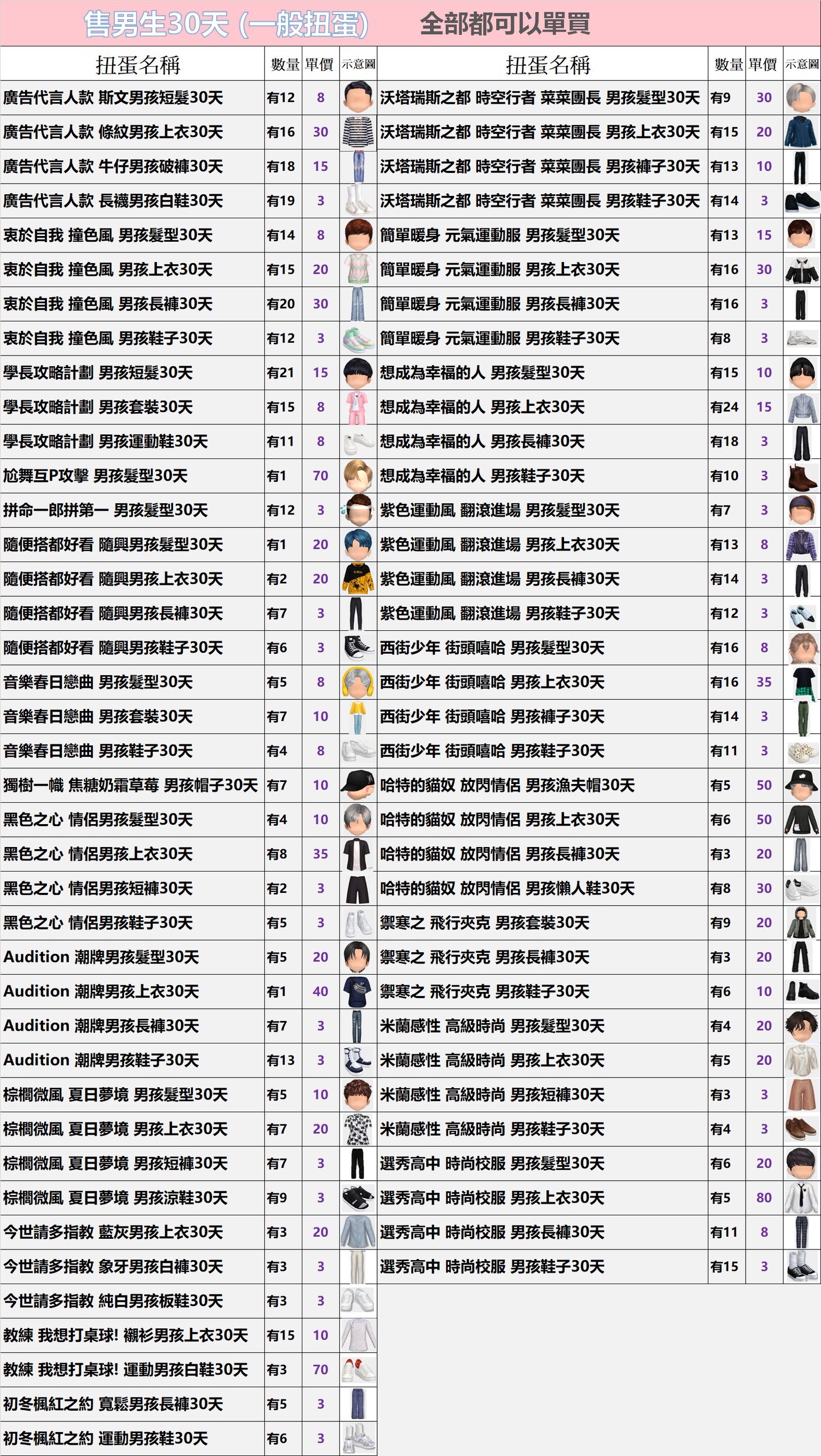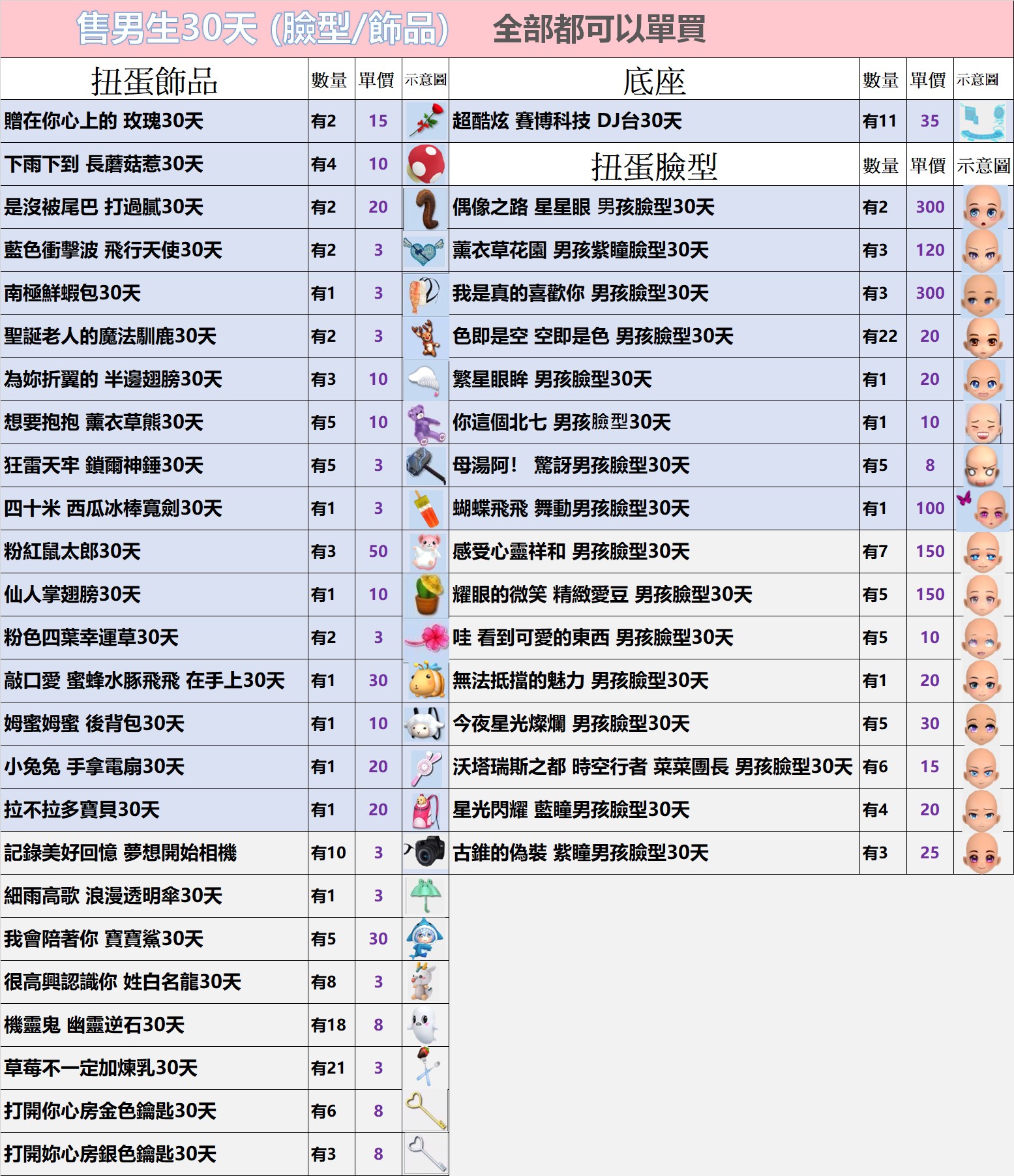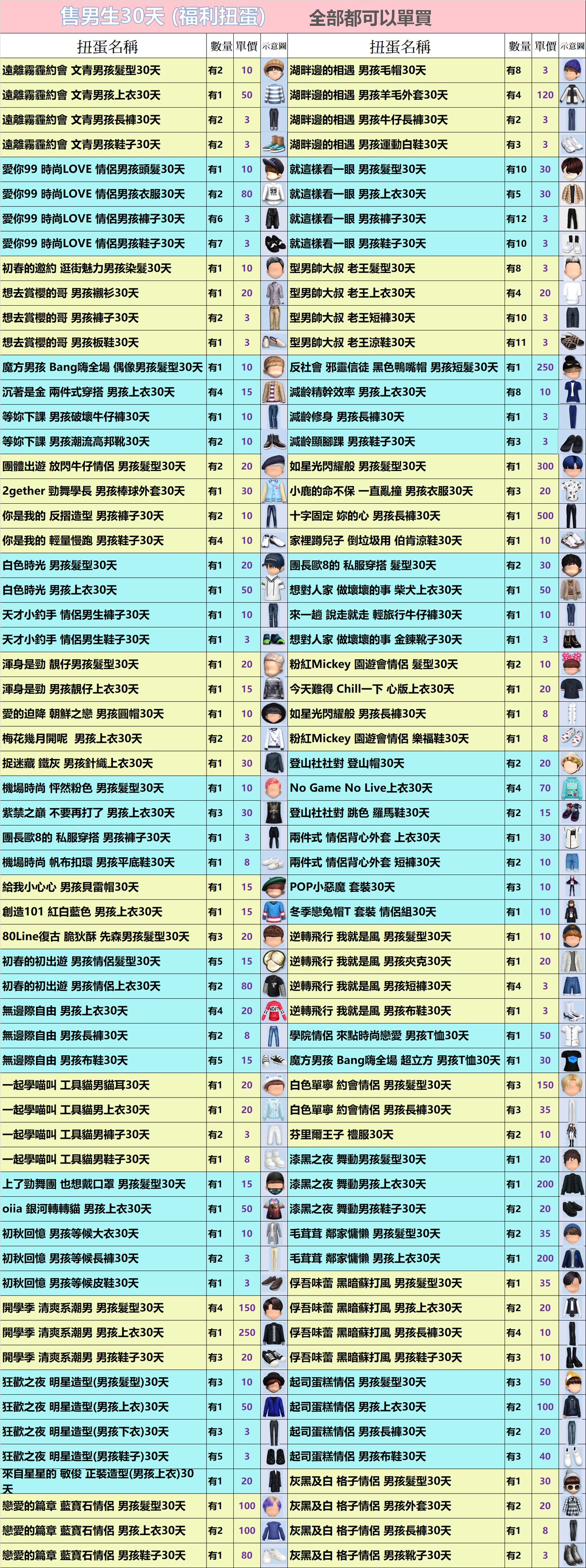 道具 安安𝖆男生30天扭蛋(3/21更)全部3元起