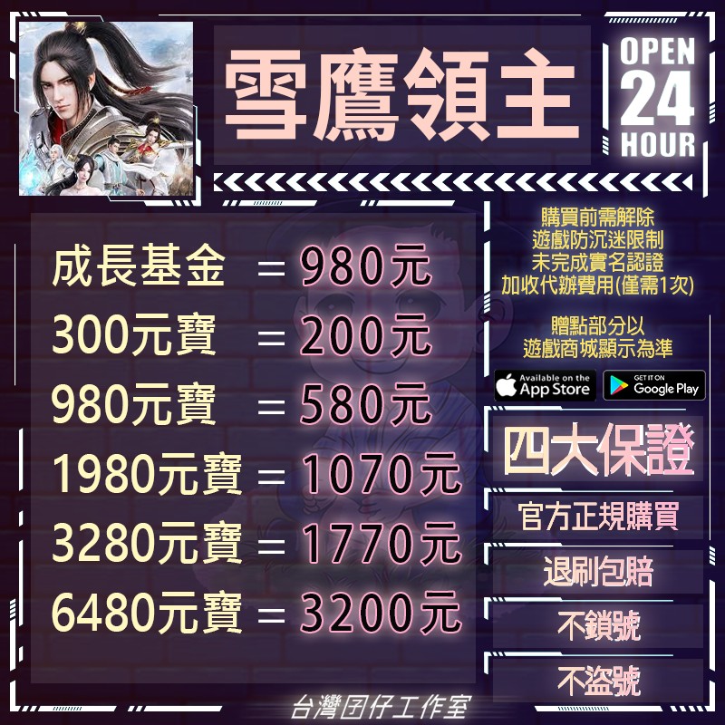 代儲【成長基金=980元】 🏆24H客服🏆現貨秒出🔥台灣囝仔🔥雪鷹領主陸服🔥20萬保證金