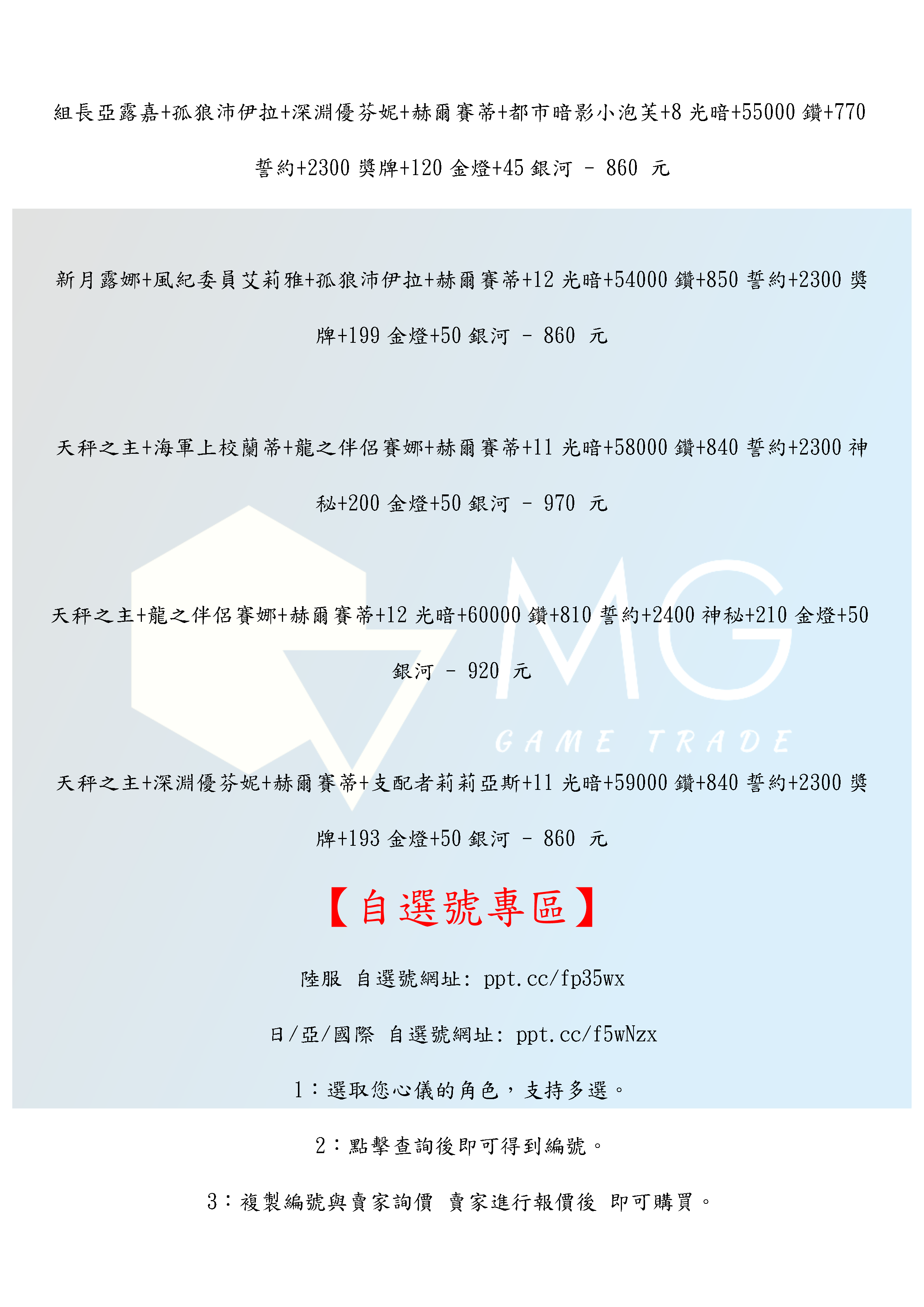 帳號 【初始號】 【MG數碼】亞服 日服 歐服 韓服 國際服 多石號 初始號 自抽號 自選組合