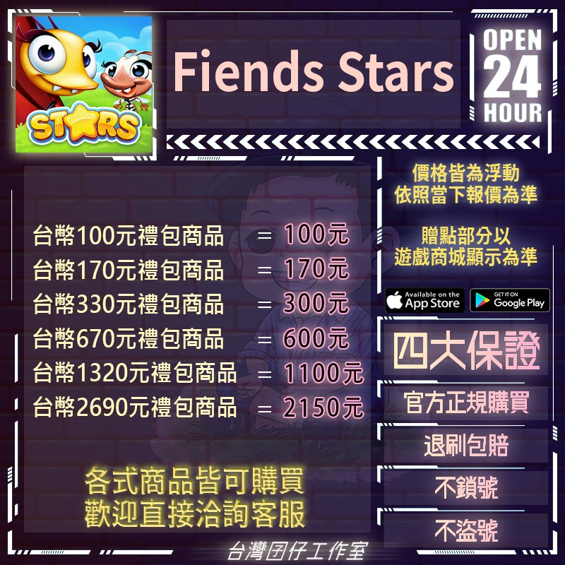 代儲【台幣100元禮包商品=100元】 🏆24H客服🏆Fiends Stars代儲🔥台灣囝仔🔥退刷包賠🔥