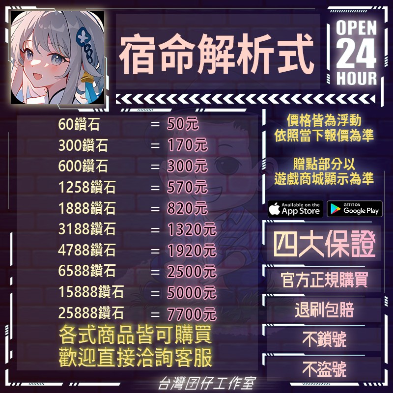 代儲【15888鑽石=5120元】 🏆24H客服🏆宿命解析式代儲🔥現貨秒出🔥台灣囝仔🔥退刷包賠🔥